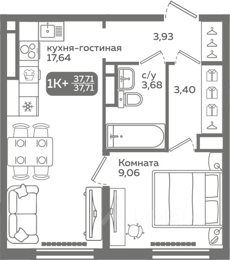 При покупке этой квартиры за наличный расчет предоставляется скидка 5% Прямая продажа от застройщика! Продается однокомнатная квартира в строящемся ЖК ''Меридиан Слобода'', срок сдачи: I-кв. 2027, общей площадью 37.71 м², на 4 этаже из 21. Площадь кухни — 17.64 м². ''Меридиан Слобода'' расположен в южной части (зеленой зоне) Тюменской Слободы рядом со строящимся Комарово парком в границах улиц Заполярная и Спасская. В районе расположены все необходимые объекты социальной инфраструктуры. ЖК ''Меридиан Слобода'' состоит из двух домов переменной этажности от 15 до 20 с отделкой фасадов разной фактуры. Главная особенность ЖК — свой собственный хвойный сквер прямо во дворе. Территория сквера будет оформлена в минималистичном стиле, главное правило которого сохранение экосистемы и гармоничное встраивание объектов инфраструктуры в природную среду. Здесь будут дорожки из деревянных настилов, зоны отдыха, отель для птиц. Квартиры сдаются с предчистовой отделкой или с ремонтом. О возможности приобретения квартиры с ремонтом уточняйте у менеджеров отдела продаж. Преимущества ЖК: — тёплый тамбур с домофоном на второй двери — дизайнерское оформление подъездов — колясочная и парковка для велосипедов — лапомойка — кладовые на цокольном этаже со входом через подъезд — закрытый двор — зоны для игр и спорта во дворе