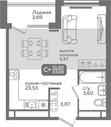 31 м² · Этаж 21 из 21