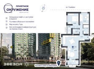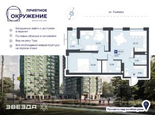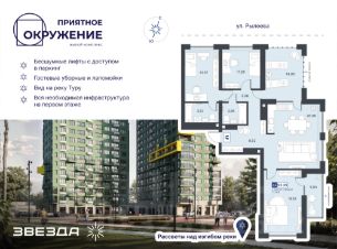 ЖК ''Приятное окружение'' комфорт-класса сочетает лаконичную архитектуру, продуманное благоустройство и эргономичные планировки. Двухсекционный дом с переменной этажностью расположен в уникальном месте: с одной стороны — дамба, с другой — зелёные массивы.Важно, что на стороне дамбы не предусмотрено строительство новых домов, а значит, из окон комплекса всегда будут открываться живописные виды на природный ландшафт. Есть квартиры с панорамными окнами и видами на набережную и мост Влюбленных. А в праздничные дни можно любоваться фейерверками, не выходя из дома.