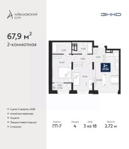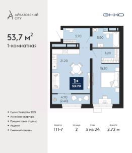 Спешите забронировать по этой цене! Предложение ограничено! Стоимость квартиры указана со скидкой, ваша экономия составит 432,896 RUB. Информация по телефону, наши менеджеры вам все расскажут! Продается 1-комн. квартира с предчистовой отделкой в ЖК ''Айвазовский City'' на 16 этаже. Общая площадь: 38.1 кв.м., жилая: 12.1 кв.м., площадь просторной кухни-столовой: 14.4 кв.м. Все окна выходят на одну сторону. В квартире одна лоджия, один совмещенный санузел. Высота потолков 2.72 м. Дом монолитный, многоподъездный, переменной этажности, от 9 до 24 этажей. Квартира находится во 2-й секции высотой 24 этажа в корпусе ГП-7. На этаже 7 квартир. В подъезде 1 пассажирский и 2 грузовых лифта. Окончание строительства - 3 квартал 2026 года. Оформление сделки по договору долевого участия. Новый жилой район располагается в живописном месте на берегу Туры в центральной части города. Принципиально новое пространство для жизни в центре современного города для тех, чьи мечты сбываются, кто нацелен на постоянный рост, перемены к лучшему для себя и своих близких.Каждая деталь Айвазовский City вдохновляет и заряжает на новые свершения: авторская архитектура, сбалансированная продуманная инфраструктура, дизайнерские дворы со спортивными и детскими площадками, парковые зоны с фонтанами, водный канал, украшающий центральный прогулочный маршрут района и многое другое. В 2019 года проект стал лауреатом престижной премии Urban Awards 2019 в номинации ''Лучший строящийся региональный жилой комплекс бизнес-класса''. Главная особенность Айвазовский City - соседство разных архитектурных школ в рамках одного дома. Изысканная классика, выразительная эклектика и оригинальный модерн - жить в одном из таких домов настоящий повод для гордости. Айвазовский City это идеальное сочетание комфорта, технологий и развитой инфраструктуры. Вход в подъезд возможен с улицы и со двора. Отправляясь на работу или за покупками, жители могут выйти с внешней стороны дома, а для прогулки с ребенком со стороны двора. Экологически чистые материалы и энергосберегающие технологии, качественное освещение общественных зон, видеонаблюдение по всей территории жилого района (в том числе в подъездах, лифтах и в подземном паркинге), закрытые дворы с доступом только для жителей Айвазовский City. Часть домов в Айвазовский City будут оснащены подземным паркингом. Востребованный в нашем климатическом поясе формат хранения автомобилей защитит собственность владельца в любое время года. Аккредитация в банках: ОАО ''Альфа-Банк'', ПАО Банк ''ВТБ'', ПАО ''Газпромбанк'', ''Сбербанк России'', АО ''ДОМ.РФ'' и других. #2sES9i