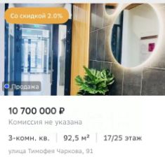 Скидка на ипотеку 2 % в Сбербанке.Быстрая и безопасная сделка на ДомКлик: вам потребуется только 1 визит в банк по месту своего жительства, все остальное мы сделаем дистанционно.Возможна продажа с местом в паркинге, соединенном теплым переходом в СитиМолл и к остановке общественного транспорта. Цена паркинга -350 тыс.руб.Квартира с большой прихожей, кухней-гостиной, двумя санузлами и кабинетом.Сам дом - монолитно-кирпичный, введен в эксплуатацию в 2023 г., дом дал усадку, и уже редко слышны звуки ремонтов соседей.В квартире никто не прописан, обременений нет, что позволяет выйти на быструю сделку. Пока мы оформляем сделку, вы можете приступать к ремонту.Квартира расположена на 17 этаже 25-этажного дома, что обеспечивает прекрасный вид из окон на двор, лес и улицу.Особенностью данного жилья является его расположение - закрытая охраняемая территория дома гарантирует безопасность и спокойствие жителей. Во дворе находятся детская и спортивная площадки, где ваши дети смогут весело проводить время на свежем воздухе. Рядом расположены школа, детский сад (строится ещё один), и торгово-развлекательный цент СИТИМОЛЛ, ЛЕМАНАПРО, АШАН, Гагаринский парк и фитнес-центр. в жилом комплексе есть собственный променад для прогулокДля тех, кто следит за красотой и стилем, поблизости работают Wow Hair, Студия реконструкции волос, Барбершоп и Pion, а также бьюти-студия. Любителям вкусной еды придутся по душе расположенные рядом кафе и рестораны, включая Zotman Pizza.Эта квартира станет идеальным выбором для тех, кто ценит комфорт, безопасность и качество жизни. Приглашаем вас ознакомиться с этим предложением поближе и убедиться во всех преимуществах данной недвижимости.