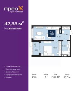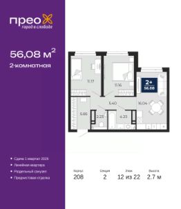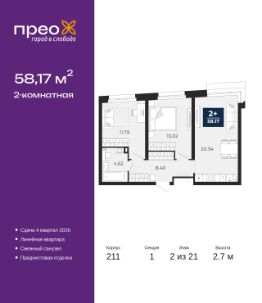 Продается 2-комн. квартира от застройщика с предчистовой отделкой в ЖК ''Прео'' на 12 этаже. Общая площадь: 59.26 кв.м., жилая: 23.26 кв.м., площадь просторной кухни-столовой: 15.77 кв.м. Квартира угловая, окна oбecпeчивaют paвнoмepнoe ocвeщeниe в тeчeниe дня. В квартире одна лоджия, один раздельный санузел. Высота потолков 2.7 м. Дом монолитный, двухподъездный, высотой 22 этажа. Квартира находится во 2-й секции в корпусе 207. На этаже 8 квартир. В подъезде 1 пассажирский и 1 грузовой лифт. Окончание строительства - 1 квартал 2026 года. Оформление сделки по договору долевого участия. Преображенский — один из самых привлекательных районов для жизни! Это полностью самостоятельный жилой район с точки зрения инфраструктуры. Преображенский находится между Московским и Червишевским трактами в квартале улиц Закалужская — Вьюжная — Александра Протозанова. Не нужно ждать, когда появится инфраструктура — переезжайте на всё готовое. Вблизи расположены действующие школа и детский сад. В этом году откроется еще один сад, а в следующем году — школа. По соседству с Преображенским запланировано строительство городского парка ''Комарово'' площадью 38 гектар. За 10 минут можно доехать на автомобиле до крупных ТРЦ: ''Лента'', ''Кристалл'', ''Леруа Мерлен'', ''Метро'' и ''Ашан''. С 2018 года в районе открыт Соседский центр — пространство, созданное для формирования добрососедской среды, совместного досуга, общения и реализации соседских инициатив. Здесь проходят встречи соседей, а также сами жители района организовывают мероприятия. Организатором такого события может стать любой желающий. В квартирах выполнена качественная предчистовая отделка. Гладкие стены с финишным выравниванием по маякам. Ровный потолок для установки натяжного потолка. Установлены пятикамерные окна с двойным стеклопакетом (3 стекла). Дизайнерские холлы с видеонаблюдением, безбарьерным и прозрачным входом всегда светло и спокойно. На первом этаже есть просторные колясочные, где все жители могут оставлять свои коляски и велосипеды. В Преображенском есть всё, что нужно для активного отдыха и занятий спортом. Мы сделали большое футбольное поле с безопасным покрытием. Также установили хоккейный корт, который оборудован по всем необходимым стандартам. Во дворах можно делать упражнения на специальных площадках с турниками. Весь район мы обустроили велодорожками, которые связаны в единый маршрут. У нас есть сухие фонтаны, бьющие из земли, деревья, веревки, сетки, скалодром, газон, песок и резинка — осталось просто дать своему ребенку право на свободную игру. По-настоящему хорошие дворы — это те, которые дети предпочитают соцсетям и телевизору. Аккредитация в банках: ПАО ''Газпромбанк'', ПАО ''Банк Уралсиб'', ПАО Банк ''ВТБ'', ОАО ''Альфа-Банк'', ''Сбербанк России'' и других. #z6AZBE