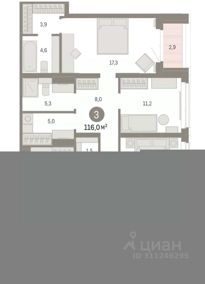 116 м² · Этаж 14 из 16