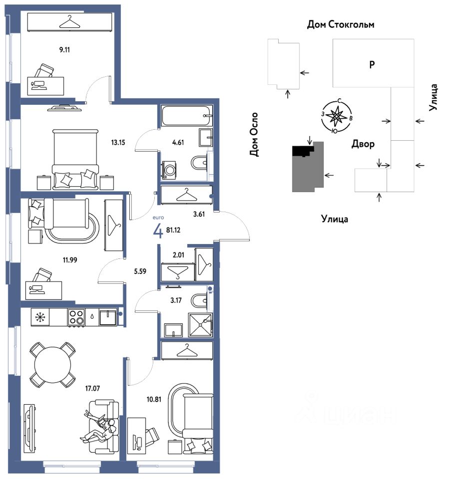 81 м² · Этаж 17 из 24