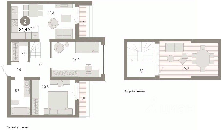 Просторная 2-комн. квартира с первичной отделкой в ЖК ''Зарека'' на 8 этаже. Общая площадь: 84.42 кв.м. Высота потолков 2.7 м. Дом монолитный, многоподъездный, переменной этажности, от 5 до 9 этажей. Квартира находится в 1-й секции высотой 8 этажей в корпусе 1. На этаже 8 квартир. В подъезде 1 грузовой лифт. Начало строительства - 3 квартал 2023 года. Окончание строительства - 3 квартал 2026 года. Оформление сделки по договору долевого участия. Продаётся с кладовой. Квартира с объединенной кухней-гостиной и двумя спальнями в жилом районе ''Зарека''. Особенности планировки: летняя кухня на крыше, панорамное остекление, терраса. квартиры в нашей базе: ТМН26694. Проект находится в заречной части Тюмени, на левом берегу Туры, рядом с двумя другими нашими объектами ''Европейским кварталом'' и ''Домом у озера''. С севера на юг территорию будет пронизывать пешеходный бульвар. Мы мыслим это общественное пространство как главный центр притяжения для людеи разных возрастов и интересов. На нём будут сосредоточены основные детские игровые и спортивные зоны, места для встреч и спокойного отдыха. Он также сыграет роль мостика, ведущего к другим нашим проектам в Заречной части ''Европейскому кварталу'' и ''Дому у озера''. Во дворе нет машин. Это приватное пространство, попасть в которое могут только жители. Его площадь позволила нам разместить здесь и большую игровую площадку, и зону воркаута, и лаунжи с садовой мебелью, где можно почитать или поработать, и перголу, в тени которой будет приятно укрыться, например, пока ребёнок возится в песочнице. Входы в подъезды мы сделали прозрачными и расположили их на уровне земли. Домофон разместили в тёплом тамбуре, чтобы ни вам, ни вашим гостям не пришлось ждать открытия двери на улице. В границах нашего участка мы намерены разместить школу, рассчитанную на 1800 учеников, и два встроенных детских сада на 135 и 150 мест. Первые этажи жилых зданий мы, как всегда, отдадим под супермаркеты, кафе, рестораны, фитнес-клубы и медицинские центры, а также построим два коммерческих павильона со стороны улицы Урайской. #zzE3g4