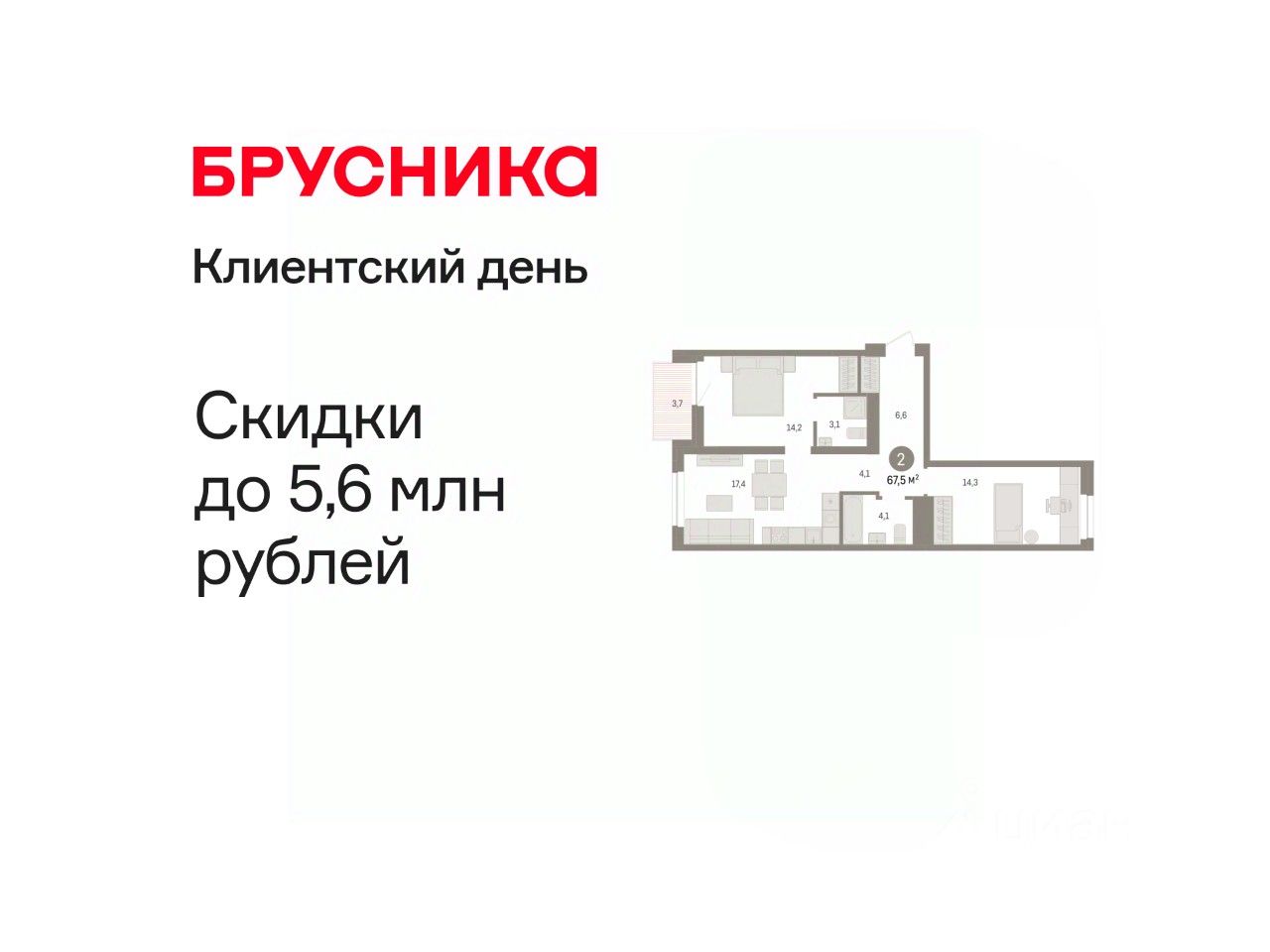 67 м² · Этаж 17 из 23