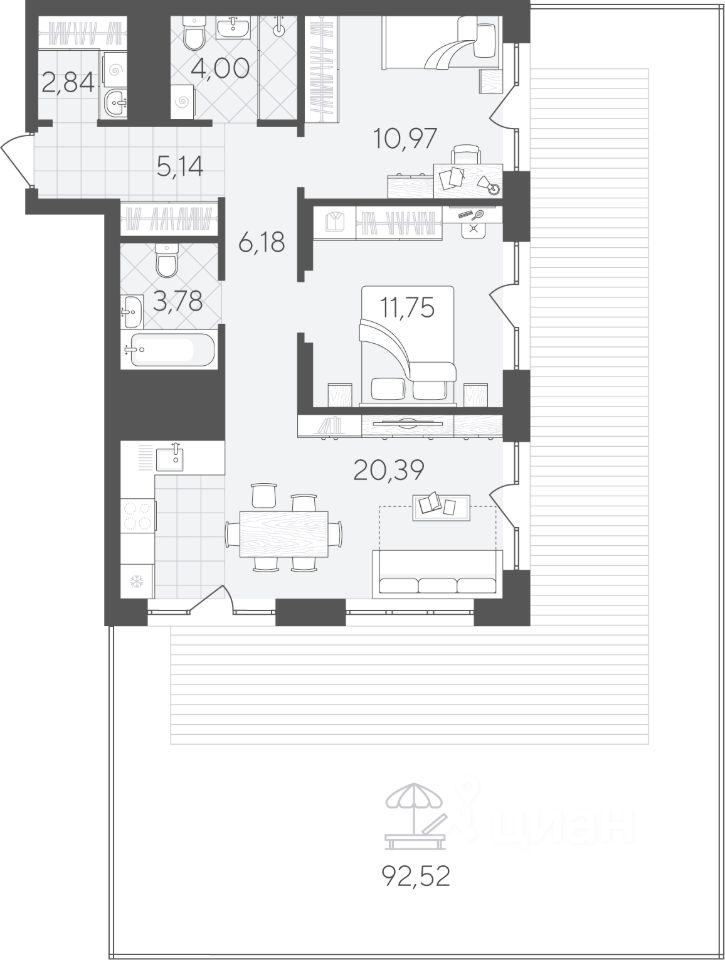 69 м² · Этаж 12 из 19