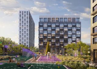 19-этажная архитектурная доминанта с эффектом паруса и камерная секция: французские балконы, сити-хаусы на 1-м этаже, 9 этажей в доме. Уступчатая структура формирует динамичный силуэт — новый акцент ул. Полевая. Металлические балконы создают градиент от тёмного к светлому, большие окна — панорамные виды на город.