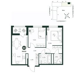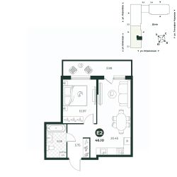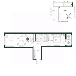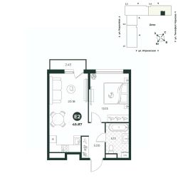 Классическая двухкомнатная квартира с мастер-спальней оборудованной гардеробной. В квартире предусмотрено два санузла - гостевой и полноценная ванная комната.