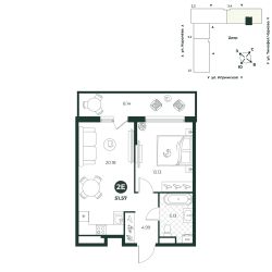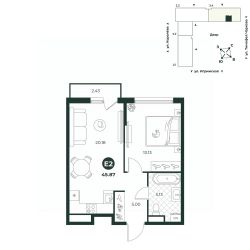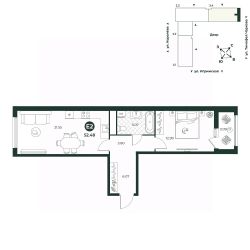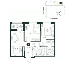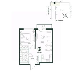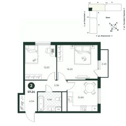 Евродвухкомнатная квартира с просторной кухней-гостиной создает идеальные условия для семейного досуга. В одной из комнат есть выход на балкон. Санузел совмещенный, площадь позволяет установить стиральную и сушильные машины.
