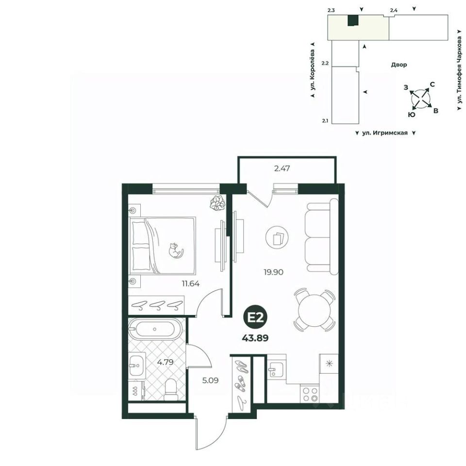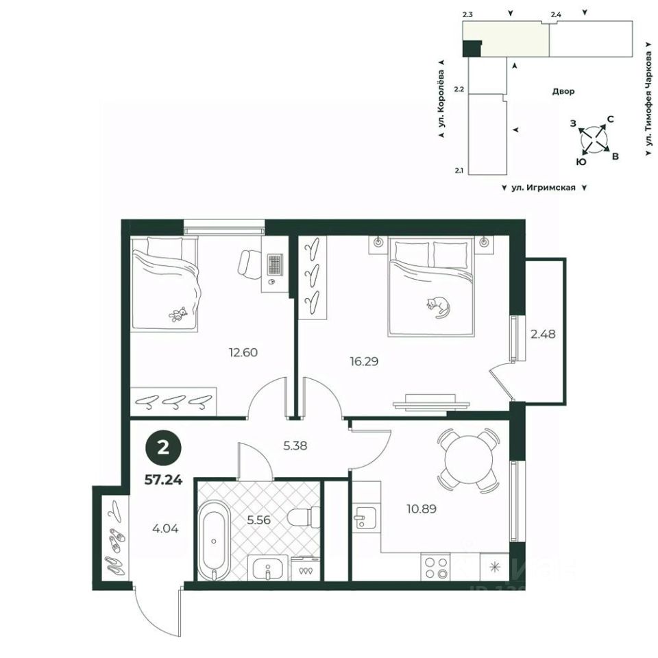 2-к, Королева, 2097