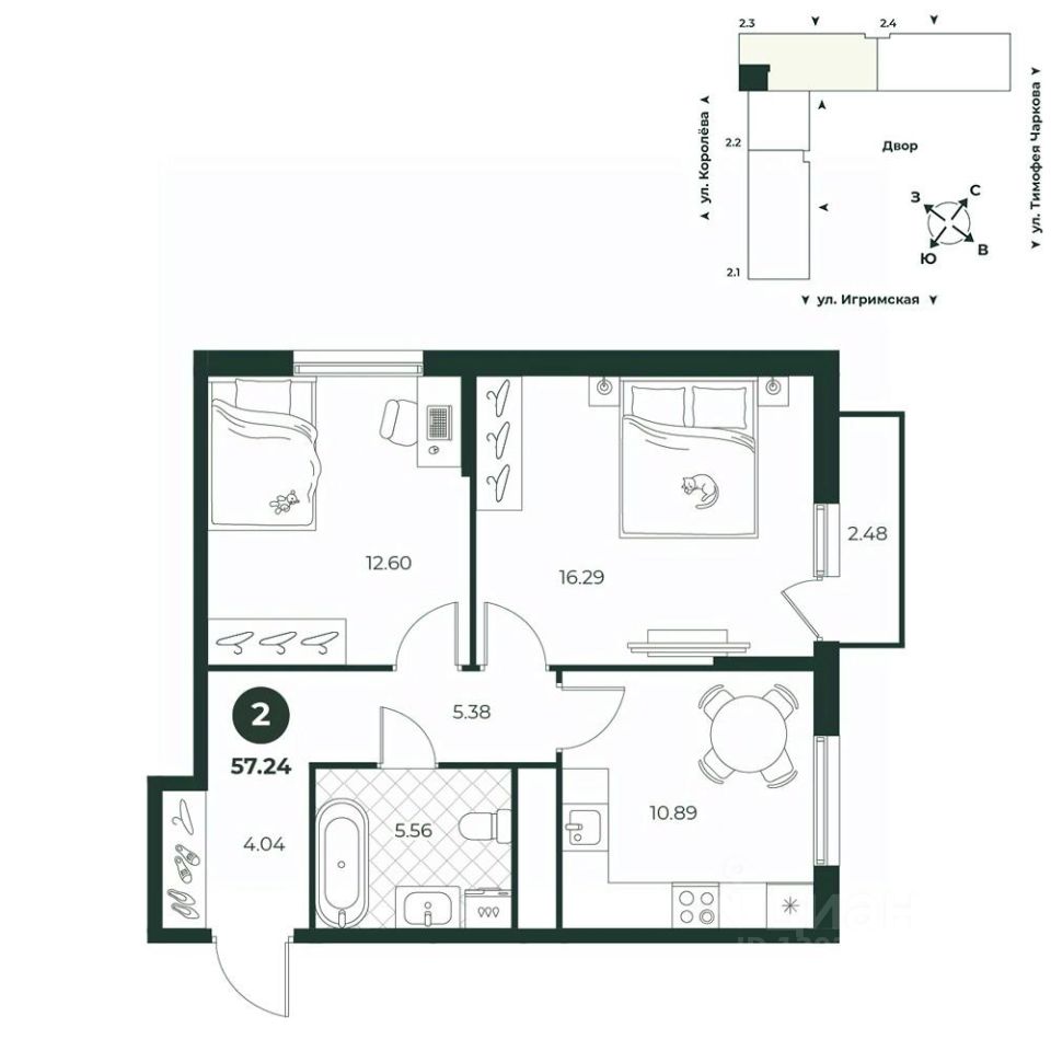 57 м² · Этаж 4 из 18