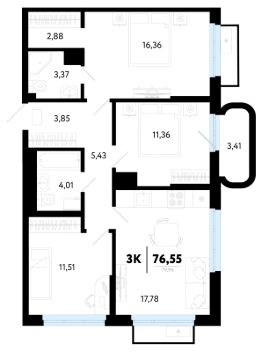 Продаётся квартира площадью 55.3 м2 в жилом комплексе ''Айрис''. Квартира находится на 8 этаже, жилая площадь квартиры 31.1 м2, площадь просторной кухни — 8.9 м2. Среди особенностей планировки — изолированные комнаты с окнами на одну сторону, 1 совмещённый санузел. Срок сдачи — III кв. 2027 Жилой комплекс ''Айрис'' — это: - фиджитал-квартал в Тюмени - дома высотой от 7 до 25 этажей - квартиры с системой ''Умный дом'' - цифровые технологии как элемент благоустройства Окружение В нескольких минутах ходьбы от дома — парк ''Комарово'' с волейбольной площадкой, открытым кинотеатром, зонами для барбекю и катком. Неподалеку от Airis находится центр иппотерапии, где можно покататься на лошадях и взять уроки верховой езды. На территории Airis появится собственный парк с прогулочными аллеями. Инфраструктура В 5-10 минутах от квартала открыты 2 детских сада и гимназия. На шопинг можно отправиться в торговые комплексы ''Колумб'' и ''Кристалл'' — они находятся недалеко от дома. Благоустройство Уютный двор — приватное пространство для жителей. В беседках можно будет почитать книгу в тишине, а в тени деревьев устроиться на пикник. На крыше многоуровневого паркинга будет лаунж-зона с кинотеатром, баскетбольная площадка и воркаут-пространство, где можно позаниматься с виртуальным тренером — достаточно отсканировать код. Лобби Интерьеры лобби выполнены в пастельных тонах с элементами фиджитал-решений. Для отдыха и ожидания гостей создана лаунж-зона. Также есть гостевые санузлы. Колясочные Возвращайтесь налегке после прогулки с малышом — оставить коляску можно в специальном помещении на первом этаже. Кладовые Для сезонных и габаритных вещей предусмотрены отдельные кладовые на цокольном этаже. В каждом помещении уже проведено электричество и выполнена стяжка пола. Паркинг На территории — два многоуровневых наземных паркинга. Один из них примыкает к домам — из него можно напрямую пройти в парадные. Планировки Планировки квартала — от компактной студии до сити-хауса с собственным палисадником — соответствуют любым жизненным сценариям. Можно выбрать квартиры с террасами и готовыми дизайнерскими интерьерами.