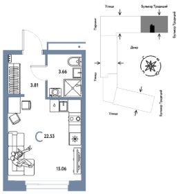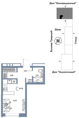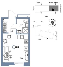 Объявление от застройщика Страна Девелопмент. Покупка квартиры защищена банком.Продается 1комнатная квартира на 10 этаже от застройщика Страна Девелопмент. Площадь квартиры 22,53 кв. м.О ПРOЕКТЕMикpорайон ''Домaшний'' — этo 6 очередей стpоитeльcтвa, 24 дома пеpемeннoй этажнoсти. Каждый дом уникальный.Внутри микрорайона появится огромный пешеходный бульвар — бульвар Традиций. Центром притяжения станут открытые пространства для отдыха жителей и гостей микрорайона, которые легко меняются под сезонные сценарии отдыха: новогодняя елка, ярмарки, кинопоказы и т.д.У каждого дома обустроен приватный двор с зонами для активного и спокойного отдыха. В активной зоне детские разновозрастные площадки с горками, песочницами и качелями, воркаут-зоны. В спокойной — скамейки, мини-амфитеатры, закрытые перголы. Уютной атмосферу сделает обильное озеленение и освещение ''домашними'' торшерами.ОТДЕЛКАКвартиры сдаются с предчистовой отделкой. Все грязные работы выполнены: произведена разводка электричества и отопления, выполнена стяжка пола, стены выровнены ''под маяк''. В квартире установлены розетки, выключатели и радиаторы. На входе — надежная стальная дверь. Вам остается только выбрать материалы и начать ремонтДоступна опция ''Ремонт от застройщика''. Стоимость можно включить в ипотеку.КУХНЯ С ТЕХНИКОЙТеперь дополнительно к ремонту можно заказать кухню со встроенной техникой. Эргономику и функциональное наполнение разработали под каждую планировку.ПОЛНАЯ МЕБЛИРОВКАБольше не нужно тратить время даже на подбор, доставку и сборку мебели.Вы можете включить в стоимость квартиры с ремонтом полную меблировку.Что входит в меблировку?- Кухня с техникой и сантехникой- Диван- Кровать- Шкаф в спальне- Шкаф в прихожей