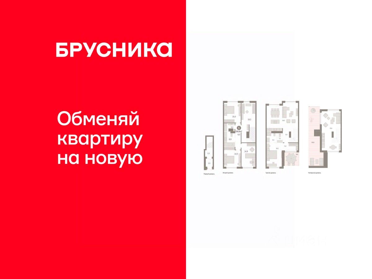 Просторная четырехкомнатная квартира с предчистовой отделкой в ЖК ''Дом у озера'' на 2 этаже. Общая площадь: 220.77 кв.м. Высота потолков 2.7 м. Дом монолитный, многоподъездный, переменной этажности, от 2 до 8 этажей. Квартира находится в 1-й секции высотой 2 этажа в корпусе 3. На этаже 2 квартиры. Окончание строительства - 2 квартал 2027 года. Оформление сделки по договору долевого участия. Продаётся с паркингом. Двухуровневая квартира с кухней-гостиной и четырьмя спальнями в Доме у озера. Особенности планировки: двухуровневая, окна на две стороны, окно в коридоре, отдельный вход, предчистовая отделка, разнесённые спальни, стактхаус, терраса на крыше. квартиры в нашей базе: ДМУ03-Ж1.2.1. ''Дом у озера'' является продолжением ''Европейского квартала''. Он расположен в центре заречного района города. В 2030 году здесь появится квартал, состоящий из урбан-вилл, таунхаусов, секционных домов и башни. Вокруг уже сформирована необходимая инфраструктура: детские сады, школы, спортивный комплекс, продуктовые магазины, аптеки, кофейни, рестораны и салоны красоты. Путь до центра города занимает 7 минут на машине. Озеро Тихое — ценный рекреационный ресурс. Брусника вернула ему прежнее значение и сделала новой точкой притяжения для жителей микрорайона. Ключевым элементом концепции благоустройства стала вода. В каждой части квартала архитекторы нашли для нее свою форму. Вдоль пешеходных улиц разместили искусственные ручьи, на центральной площади — фонтан и дождевые сады. Основная точка притяжения жителей — озеро и выходящий на его сторону променад. Здесь мы организуем смотровые площадки и расположим летние террасы кафе и ресторанов. Тесную связь застройки с ландшафтом обеспечивает многоуровневое озеленение. Буфер из деревьев и кустарников по периметру квартала превращается в естественный ветрозащитный экран. Такое решение позволяет создать на территории ''Дома у озера'' комфортный микроклимат. Подъезды ''Дома у озера'' с прозрачными входными группами и большими лифтами. Для мест общего пользования архитекторы разработали новую интерьерную коллекцию, вдохновленную эклектичными восточными мотивами. В отделке сочетаются коричневый, желтый и белый цвета, повторяющие колористические решения фасадов. Декоративные перегородки, установленные в лобби, напоминают машрабию — элемент арабской архитектуры в виде узорной решетки. За счет мягкой мебели, многоуровневого освещения теплых оттенков и предметов декора (например, зеркал и картин) холлы воспринимаются как продолжение квартиры. #Z5Dvs4