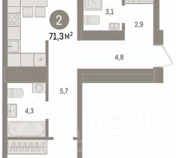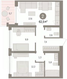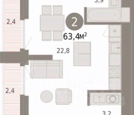 2-комн. квартира от застройщика с предчистовой отделкой в ЖК ''Зарека'' на 22 этаже. Общая площадь: 63.42 кв.м., жилая: 21.6 кв.м., площадь просторной кухни-гостиной: 22.8 кв.м. Комнаты изолированные, все окна выходят на одну сторону. В квартире две лоджии, один совмещенный и один раздельный санузел. Высота потолков 2.7 м. Квартира находится в корпусе 5-1. Дом монолитный, одноподъездный, высотой 25 этажей. На этаже 12 квартир. В подъезде 2 пассажирских и 1 грузовой лифт. Окончание строительства - 1 квартал 2027 года. Оформление сделки по договору долевого участия. Квартира с кухней-гостиной и двумя спальнями в жилом районе ''Зарека''. Особенности планировки: балкон, предчистовая отделка, разнесённые спальни. квартиры в нашей базе: ЗРК05.1-Ж1.22.3. Проект На планировочную структуру ''Зареки'' повлияла близость к автомобильному мосту Челюскинцев. Мы расположили жилые здания так, чтобы они постепенно удалялись от проезжей части. Приём напоминает лесенку: чем сильнее мост возвышается над участком застройки, тем дальше по отношению к нему стоят дома. Этот ступенчатый сдвиг позволил нам сформировать буфер между кварталами и оживлённой магистралью. Мы намерены высадить здесь высокие деревья и создать дополнительную защиту от дорожных шума и пыли. В границах нашего участка мы намерены разместить школу и два встроенных детских сада на 135 и 150 мест. Общественные пространства С севера на юг территорию будет пронизывать пешеходный бульвар. Мы мыслим это общественное пространство как главный центр притяжения. На нём будут сосредоточены основные детские игровые и спортивные зоны, места для встреч и спокойного отдыха. Он также сыграет роль мостика, ведущего к другим нашим проектам — ''Европейскому кварталу'' и ''Дому у озера''. Одна из базовых идей мастер-плана касается береговой линии. Сегодня озеленение этой территории носит стихииныи характер, а прямому доступу к Туре препятствует дамба. Мы хотим благоустроить пространства у воды и открыть их для людей. Архитекторы спроектировали систему многоярусных троп и спусков к реке, смотровые площадки и места для активного отдыха и пикников. #zMA0e9