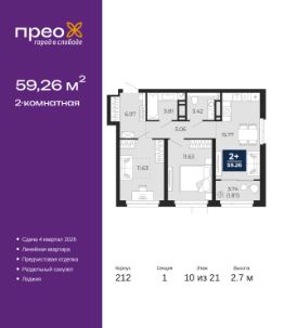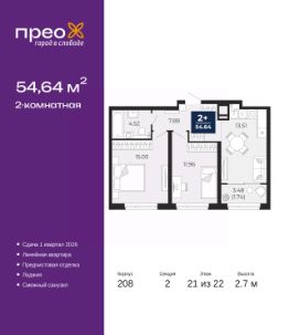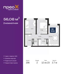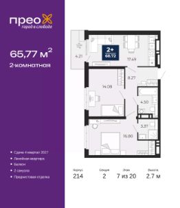 Продается 2-комн. квартира с предчистовой отделкой в ЖК ''Прео'' на 18 этаже. Общая площадь: 54.64 кв.м., жилая: 26.99 кв.м., площадь просторной кухни-столовой: 13.51 кв.м. Комнаты изолированные, все окна выходят на одну сторону. В квартире одна лоджия, один совмещенный санузел. Высота потолков 2.7 м. Дом монолитный, трехподъездный, переменной этажности, от 14 до 23 этажей. Квартира находится во 2-й секции высотой 23 этажа в корпусе 206. На этаже 10 квартир. В подъезде 1 пассажирский и 1 грузовой лифт. Окончание строительства - 1 квартал 2026 года. Оформление сделки по договору долевого участия. Преображенский — один из самых привлекательных районов для жизни! Это полностью самостоятельный жилой район с точки зрения инфраструктуры. Преображенский находится между Московским и Червишевским трактами в квартале улиц Закалужская — Вьюжная — Александра Протозанова. Не нужно ждать, когда появится инфраструктура — переезжайте на всё готовое. Вблизи расположены действующие школа и детский сад. В этом году откроется еще один сад, а в следующем году — школа. По соседству с Преображенским запланировано строительство городского парка ''Комарово'' площадью 38 гектар. За 10 минут можно доехать на автомобиле до крупных ТРЦ: ''Лента'', ''Кристалл'', ''Леруа Мерлен'', ''Метро'' и ''Ашан''. С 2018 года в районе открыт Соседский центр — пространство, созданное для формирования добрососедской среды, совместного досуга, общения и реализации соседских инициатив. Здесь проходят встречи соседей, а также сами жители района организовывают мероприятия. Организатором такого события может стать любой желающий. В квартирах выполнена качественная предчистовая отделка. Гладкие стены с финишным выравниванием по маякам. Ровный потолок для установки натяжного потолка. Установлены пятикамерные окна с двойным стеклопакетом (3 стекла). Дизайнерские холлы с видеонаблюдением, безбарьерным и прозрачным входом всегда светло и спокойно. На первом этаже есть просторные колясочные, где все жители могут оставлять свои коляски и велосипеды. В Преображенском есть всё, что нужно для активного отдыха и занятий спортом. Мы сделали большое футбольное поле с безопасным покрытием. Также установили хоккейный корт, который оборудован по всем необходимым стандартам. Во дворах можно делать упражнения на специальных площадках с турниками. Весь район мы обустроили велодорожками, которые связаны в единый маршрут. У нас есть сухие фонтаны, бьющие из земли, деревья, веревки, сетки, скалодром, газон, песок и резинка — осталось просто дать своему ребенку право на свободную игру. По-настоящему хорошие дворы — это те, которые дети предпочитают соцсетям и телевизору. Аккредитация в банках: ПАО ''Газпромбанк'', ОАО ''Альфа-Банк'', ПАО Банк ''ВТБ'', ''Сбербанк России'', ПАО ''Банк Уралсиб'' и других. #z3FlgC