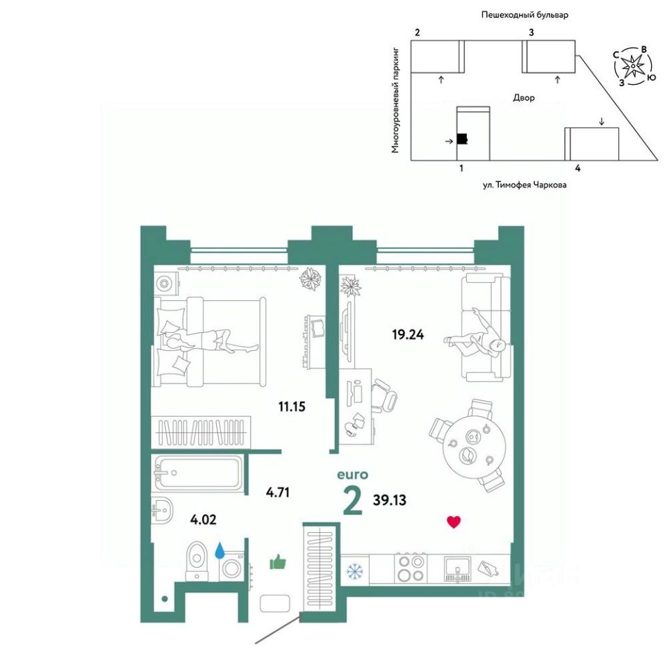 Квартира в евроформате с кухней-гостиной и второй спальней. В одной из комнат выход на лоджию с угловым панорамным остеклением. Он с окнами в пол — будет больше света. В холле ниша под шкаф и установку обувницы. В квартире предчистовая отделка: стены оштукатурены и выровнены по общему уровню, на полу слой цементно-песчаного раствора с дополнительным гидроизоляционным слоем в ванной. Проведена электрика и готовы розетки с выключателями. А ещё установлены сейф-двери и счётчики с телеметрией. Это не чистовая отделка, но во время ремонта будет меньше пыли. Вокруг много школ и детских садов, есть качественные клиники и большой парк для прогулок. Детские и спортивные площадки в закрытых дворах. Для машин продуман крытый паркинг для автомобилей. Он в 6 минутах ходьбы. Способы покупки: — ипотечные программы — обмен вашего жилья на новую квартиру — дистанционная покупка Узнать дополнительную информацию и записаться на встречу в офисе продаж можно по номеру, указанному в объявлении.