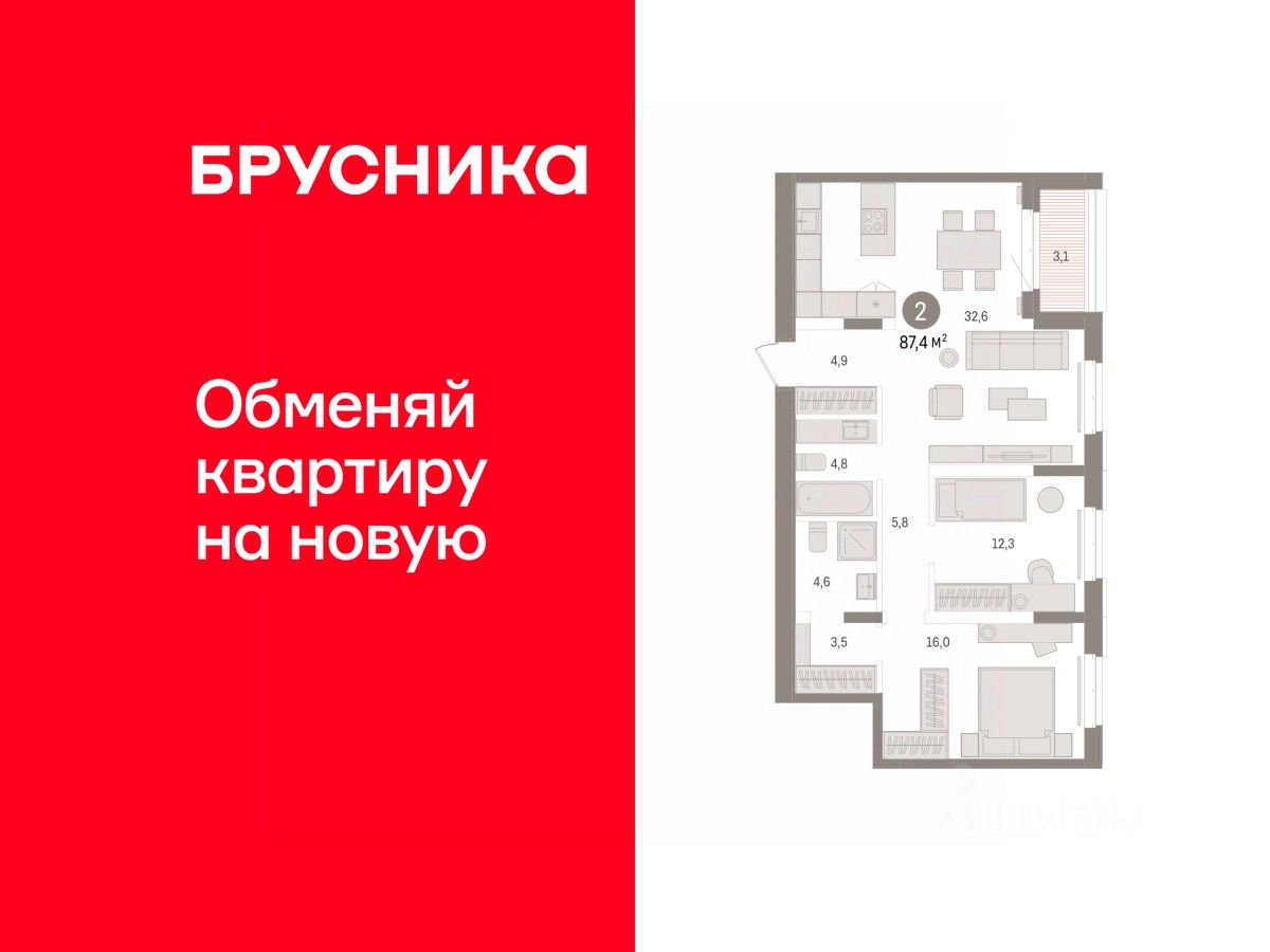 Продается двухкомнатная квартира с предчистовой отделкой в ЖК ''Республики 205'' на 3 этаже. Общая площадь: 68.59 кв.м., жилая: 26.5 кв.м., площадь просторной кухни-гостиной: 22.2 кв.м. Квартира - распашонка, без проходных комнат, окна выходят на paзные стороны дома. В квартире два совмещенных санузла. Высота потолков 2.7 м. Купить квартиру можно с помощью программ покупки от застройщика Брусника: - ипотека по эксклюзивной ставке с помощью в получении положительного кредитного решения через сервис ипотечный брокер, - квартиры в рассрочку без процентов от застройщика Брусника, - обмен квартиры на новую. Получить одобрение ипотеки или рассрочку, а также осуществить обмен квартир можно онлайн. Дом монолитный, многоподъездный, переменной этажности, от 7 до 16 этажей. Квартира находится в 4-й секции высотой 7 этажей в корпусе 2. На этаже 4 квартиры. В подъезде 1 грузовой лифт. Начало строительства - 1 квартал 2024 года. Окончание строительства - 1 квартал 2026 года. Оформление сделки по договору долевого участия. Район Проект расположен в границах улиц Пермякова, Энергетиков, Воровского и Республики. До центра города — 10 минут на машине. Рядом — автомобильная развязка на пересечении улиц Пермякова и Республики. В шаговой доступности есть школы, детские сады, поликлиники, крупный торговый центр, автовокзал и несколько скверов. Проект ''Республики 205'' — это проект комплексного развития территории, уникальный по своему наполнению. Переосмысляя бывшую территорию завода медицинского оборудования, мы создадим новое место силы — микрорайон, насыщенный деловой, развлекательной, рекреационной, игровой, образовательной и медицинской инфраструктурой. До каждого полезного сервиса здесь можно будет дойти за 15 минут. Локальными центрами ''Республики 205'' будут общественные пространства — скверы, парки, бульвары и площади. В границах нашего участка мы намерены разместить школу, рассчитанную на 1550 учеников, два детских сада на 300 мест и встроенный детский сад на 100 мест. В одном из цехов бывшего завода расположится креативный кластер ''Кузница''. Он станет площадкой для нескольких институций — галереи, лектория, книжного магазина-библиотеки, кинобара и точек креативного pop-up-ритейла. Пешеходные бульвары внутри района соединят между собой улицу ресторанов, детские и спортивные площадки, событийную площадь и летний кинотеатр. Идентификатор квартиры по базе застройщика: РСП-02-4-4. #zuff3g