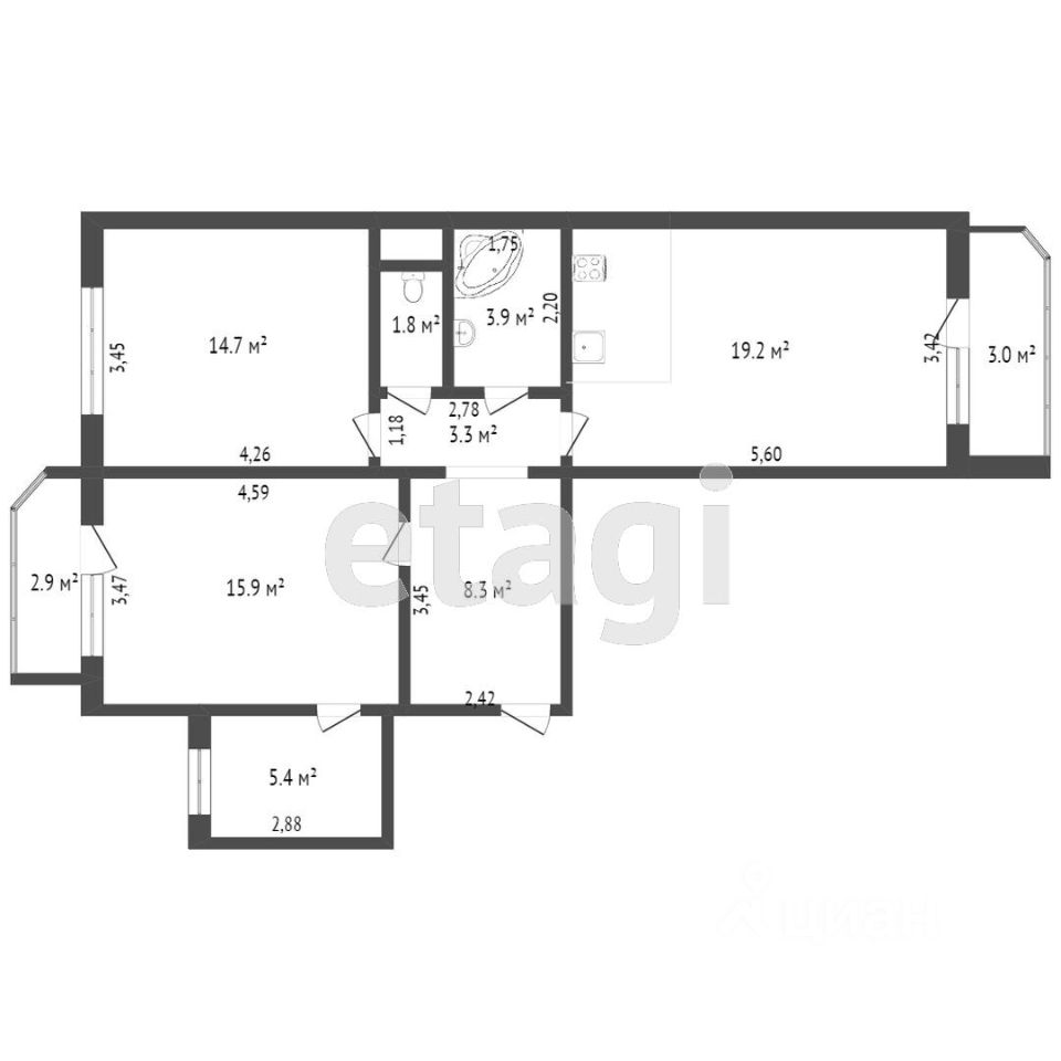 56 м² · Этаж 9 из 19