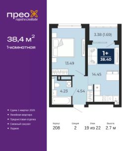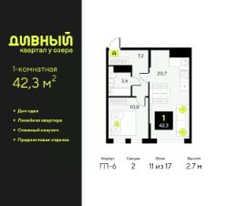 Продается 1-комн. квартира в ЖК ''Уездные кварталы'' на 9 этаже. Квартира без отделки, после оформления собственности можно делать ремонт. Общая площадь: 42.4 кв.м., жилая: 10.8 кв.м., площадь просторной кухни-столовой: 20.5 кв.м. Все окна выходят на одну сторону. В квартире одна лоджия, один совмещенный санузел. Высота потолков 2.72 м. Дом монолитный, черырехподъездный, переменной этажности, от 9 до 16 этажей. Квартира находится в 5-й секции высотой 9 этажей в корпусе ГП-5.2. На этаже 5 квартир. В подъезде 1 пассажирский и 1 грузовой лифт. Окончание строительства - 4 квартал 2026 года. Оформление сделки по договору долевого участия. ''Уездные кварталы'' - семейный жилой комплекс комфорт-класса с авторской архитектурой и трехуровневым ландшафтным озеленением. Рядом расположены крупные транспортные развязки, которые позволяют добраться в любую точку города за 15 минут. Жилой комплекс находится в современном районе с развитой инфраструктурой, на первой линии Тюменской Слободы. Вокруг есть всё необходимое в шаговой доступности: новые детские сады и школы, остановки общественного транспорта, магазины, кафе и рестораны, поликлиника, детская школа искусств, парки и спортивный комплекс. На первых этажах квартала расположена собственная коммерческая сеть, а также свой соседский центр. Проект включает 5 домов переменной этажности с более чем 100 планировками - с террасами, французскими балконами и мастер-спальнями. Закрытые дворы оборудованы интерактивными площадками для игр, спортивными зонами и местами тихого отдыха. Вдоль жилого комплекса расположен пешеходный бульвар с сухим фонтаном, а для автомобилей предусмотрен теплый паркинг. Часть квартир можно приобрести с ремонтом, мебелью и техникой от застройщика, а расходы включить в ипотечный платеж. #2MSeS6