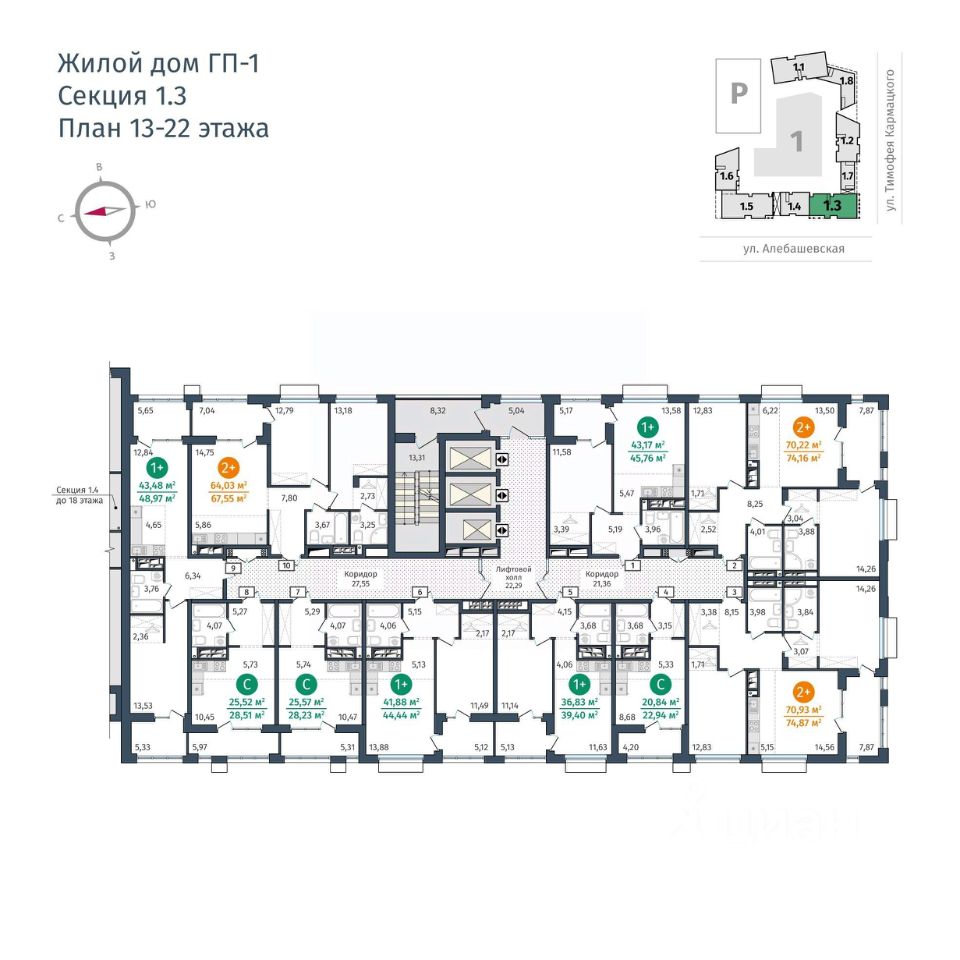44 м² · Этаж 13 из 25