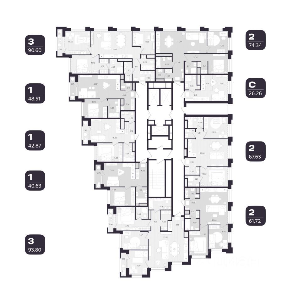 93 м² · Этаж 7 из 23