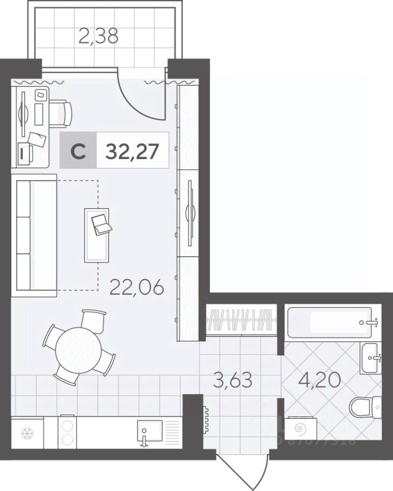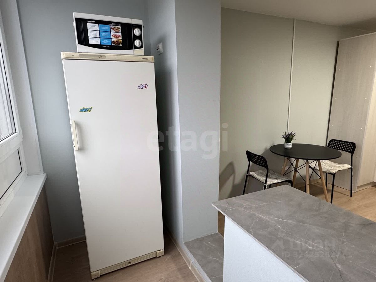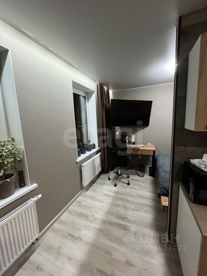 Продается студия с дизайнерским ремонтом и готовой кухней на лоджии Предлагается к продаже прекрасная студия с абсолютно новым ремонтом высшего качества. Каждая деталь продумана для комфортного проживания. Ремонт и отделка (все новое): Коммуникации: полная замена электропроводки и системы водоснабжения. Основание: стены выровнены гипсокартоном с шумоизоляцией по всему периметру, полы — сухая стяжка. Финишная отделка: натяжной потолок, стильные обои, практичный линолеум, плитка в санузле. Окна и безопасность: современное пластиковое окно и прочная входная дверь. Преимущества планировки и оснащения: Эргономичное решение: кухня расположена на утепленной лоджии, что освобождает пространство комнаты и исключает запахи. Готово к жизни: установлен кондиционер и стиральная машина. Эксклюзивная мебель: вся мебель изготовлена на заказ, идеально вписывается в помещение и остается новому владельцу. Эта студия не требует никаких вложений — это готовое, выверенное до мелочей решение для вашего комфорта. Свяжитесь со мной, чтобы задать вопросы и договориться о просмотре. Номер предложения: 56229.