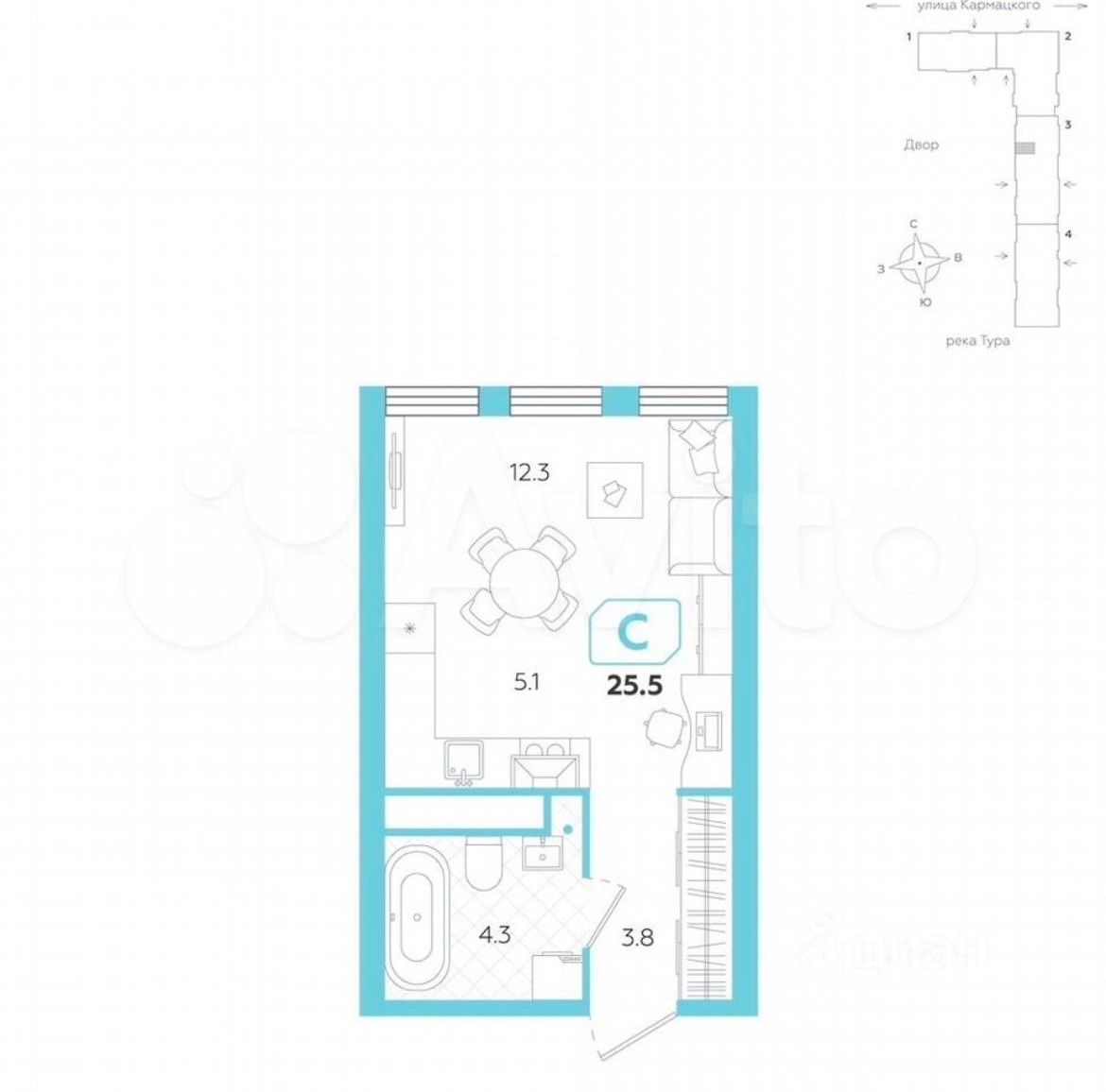 Продажа квартир-студий без посредников в Центральном районе районе в Тюмени