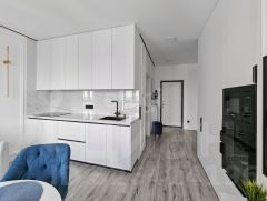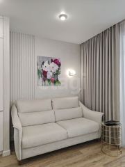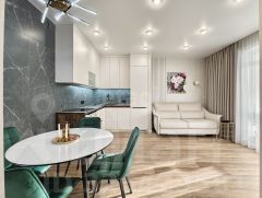 В прекрасном районе ''Айвазовский'' продается квартира формата 1+, полезная площадь которой составляет 52,9 кв.м. Кухня-гостиная 19 кв.м, утепленный балкон 5,2 кв.м., гардеробная 4,7 кв.м, спальня 13 кв.м, ванна 6 кв.м. В квартире выполнен ремонт по дизайн-проекту с использованием качественных и дорогостоящих материалов. Декоративная штукатурка на стенах, кварцвинил на полу. Белые матовые натяжные потолки. Керамогранит в ванной.Мебель и техника, представленная на фото останется новому владельцу, а именно: вся электрика подсветки освещения и скрытого света, шторы и тюль. В спальне: кровать, комод, две тумбочки, туалетный столик с зеркалом, пуфик, телевизор, музыкальный центр, кондиционер.Кухня гостиная: кухонный гарнитур и встроенные шкафы,техника кухонная (вытяжка, варочная панель, посудомойка, духовка, холодильник). В ванной: раковина с сантехникой, фильтр для очистки воды, душевая лейка с тропическим душем, полотенцесушитель электрический чёрный, полка чёрная металлическая и все крючки чёрные, шкаф встроенный, тумба с раковиной и сантехникой, зеркало с подсветкой, унитаз. Гардеробная со всеми полками и ящиками, зеркало. Зеркало в коридоре с подсветкой. Остальная мебель по договорной цене. Квартира без обременений. Один взрослый собственник. Документы готовы для продажи. Быстрый выход на сделку.''Айвазовский'' — это проект с авторской архитектурой, собственной акваторией и парком для жителей. На территории находятся: Эко парк с фонтанами и с прогулочными зонами и спортивными площадками. Близкое расположение магазинов, включая Ленту, Сити Молл и Лемана Про. Управляющая компания расположена в доме. В доме имеется подземный паркинг. Просмотры в удобное время.МЫ ГАРАНТИРУЕМ ФИНАНСОВУЮ БЕЗОПАСНОСТЬ ДЛЯ НАШИХ КЛИЕНТОВ.Код пользователя: 149080Номер в базе: 9899676