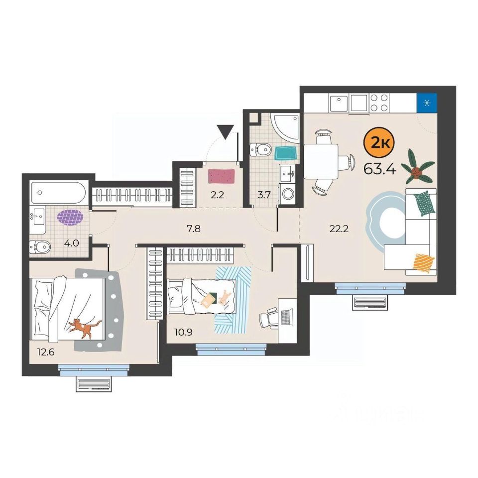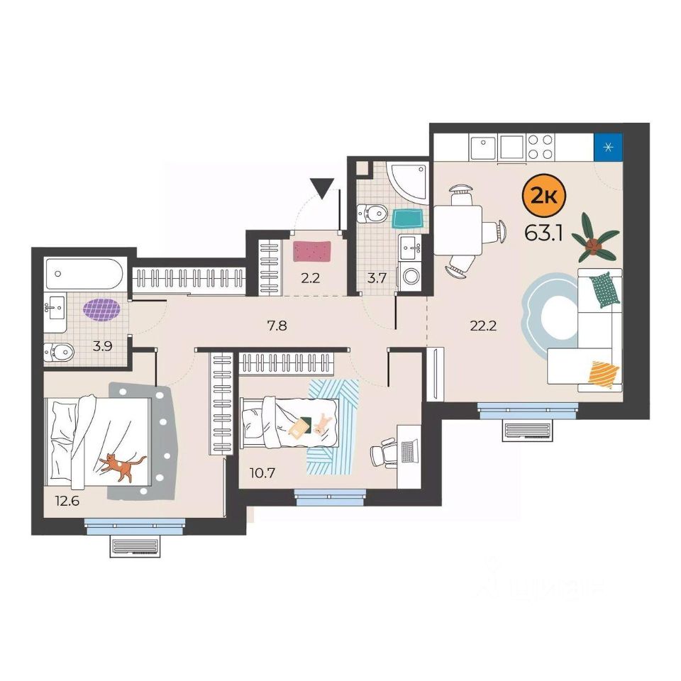 63 м² · Этаж 9 из 15