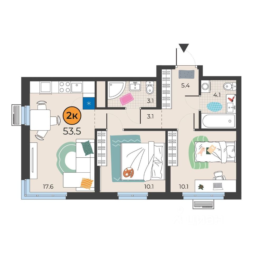54 м² · Этаж 10 из 15