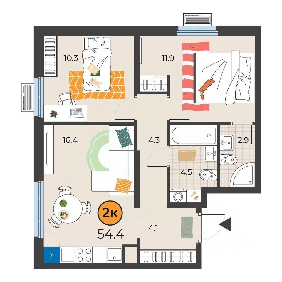 54 м² · Этаж 11 из 15