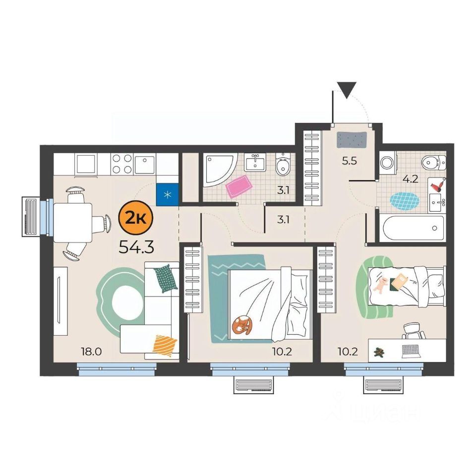 54 м² · Этаж 9 из 15