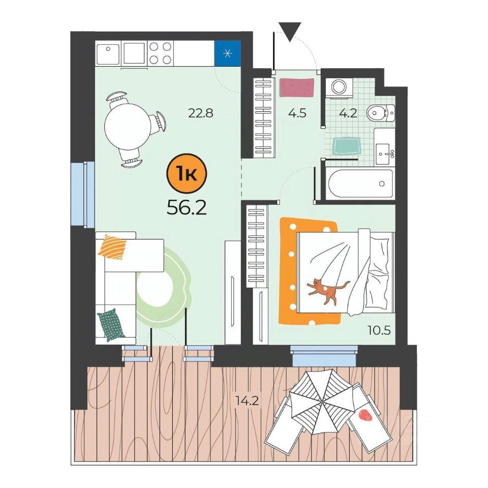 54 м² · Этаж 14 из 15