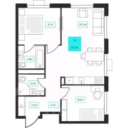Продаётся 2-комнатная квартира в строящемся доме (Дом 6к1), срок сдачи: III-кв. 2026, общей площадью 55.9 кв.м., на 18 этаже. Новый жилой комплекс ''Futuro'' от застройщика ''newton'' расположен в г. Тюмень на Ставропольской улице.
