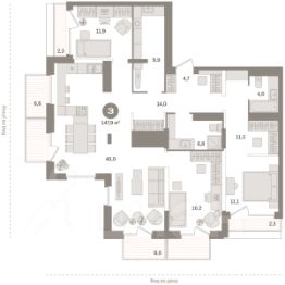 Квартира с кухней-гостиной и тремя спальнями в Октябрьском на Туре. Особенности планировки: балкон, вид во двор, вид на реку, второй санузел, гардеробная, постирочная, свободная планировка, терраса. квартиры в нашей базе: КО-07.2-1-1.24.4. Район Проект расположен на берегу реки, в одном из самых живописных и экологичных районов Тюмени. За последние годы облик района изменился. По соседству с индивидуальной застройкой выросли многоквартирные дома. При проектировании ''Октябрьского на Туре'' нашей приоритетной задачей стало сохранение природного ландшафта: мы постарались деликатно вписать в него современную архитектуру. Квартал удачно расположен с точки зрения дорожной инфраструктуры. На автомобиле путь до центра города составит 15 минут. Добраться до набережной и главных тюменских достопримечательностей можно и на общественном транспорте. В пешей доступности находится автобусная остановка. Проект По мастер-плану здесь будет восемь домов. Ядро застройки составляют замкнутые кварталы переменной этажности. Их высотность понижается по мере приближения к реке. На углах участка мы разместили башни-доминанты. Одной из достопримечательностей квартала станет парк на Туре — здесь появится зеленая зона протяженностью около 6 километров для пеших и велопрогулок. Смысловая ось квартала — широкая главная улица с высаженными вдоль неё высокими деревьями. Они создают тень и работают как шумо- и пылезащитные экраны. Это место сосредоточения основных пешеходных и транспортных потоков, на сторону которых мы ориентировали большинство коммерческих помещений. Отсюда жители могут свернуть на тихие соседские улицы и попасть на внутриквартальную площадь — ещё одну точку притяжения. #1FsS8m