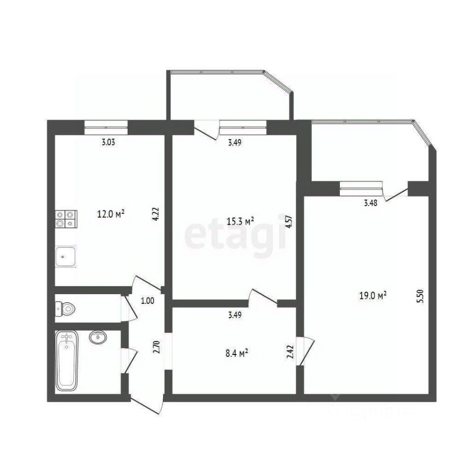 2-к, Николая Семенова, 19
