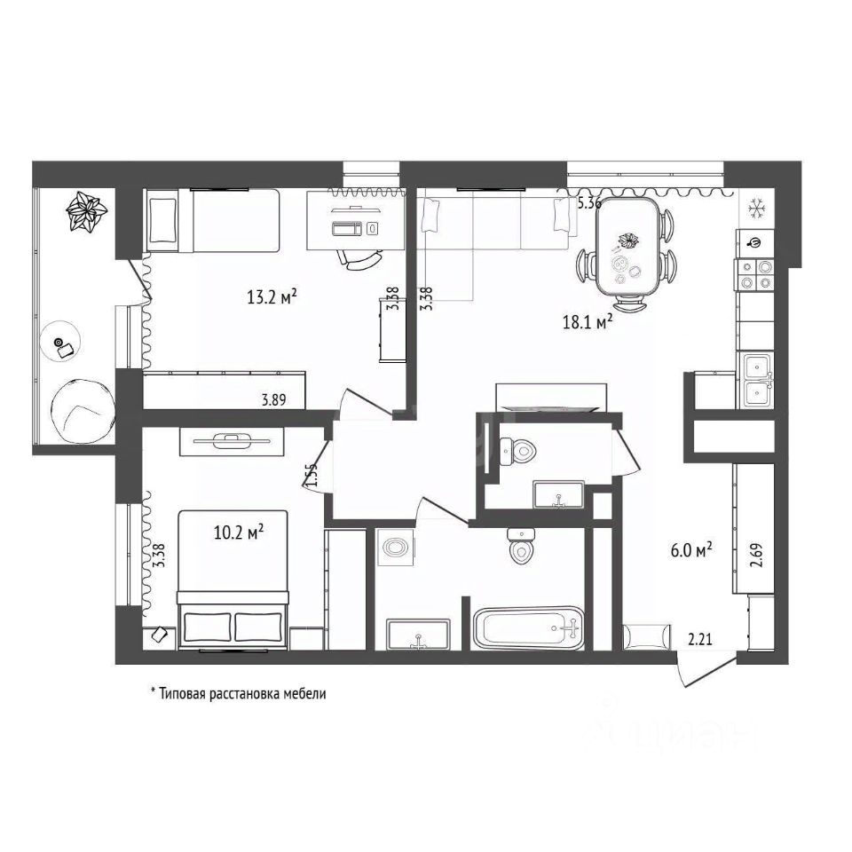 Продается двухкомнатная квартира в микрорайоне ''Европейский'' Об объекте: Площадь и планировка: общая/жилая площадь — 63,2 кв.м. Классическая двушка с изолированными комнатами, кухней-гостиной (19 кв.м.) и совмещенным/раздельным санузлом. Есть балкон/лоджия. Состояние: Выполнен современный косметический ремонт, в январе 2026 переклеены обои. Коммуникации в хорошем состоянии. Готова к заселению. Продажа с мебелью и бытовой техникой (холодильник, плита, варочная панель). Расположение и инфраструктура: Район: Микрорайон ''Европейский''. Во дворе находятся новый корпус школы 94 и детский сад 160. Двор: Благоустроенная территория с детскими площадками, видеонаблюдением по периметру и шлагбаумом. Инфраструктура: В пешей доступности магазины, кафе, прогулочные зоны, супермаркет ''Лента'', Алебашевский базар Паркинг: Имеется подземный паркинг. Место арендуется/продается отдельно. В цокольном этаже под домом расположены индивидуальные кладовые помещения. Коммунальные платежи: Средний счет составляет около 3500 руб./мес. летом и 6000 руб/мес. зимой Показ по предварительной договоренности в удобное время. МЫ ГАРАНТИРУЕМ ФИНАНСОВУЮ БЕЗОПАСНОСТЬ ДЛЯ НАШИХ КЛИЕНТОВ. Код пользователя: 186202 Номер в базе: 2074781