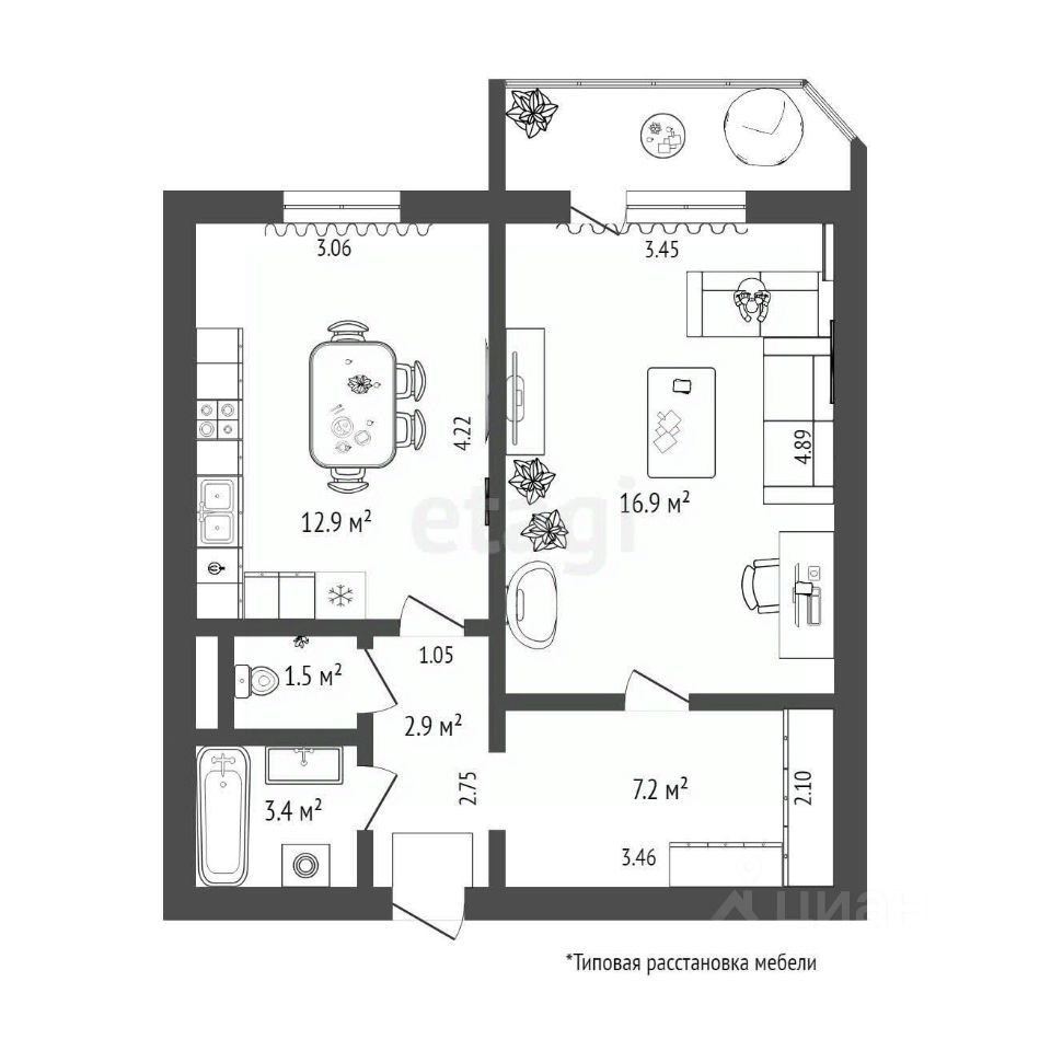 60 м² · Этаж 15 из 16