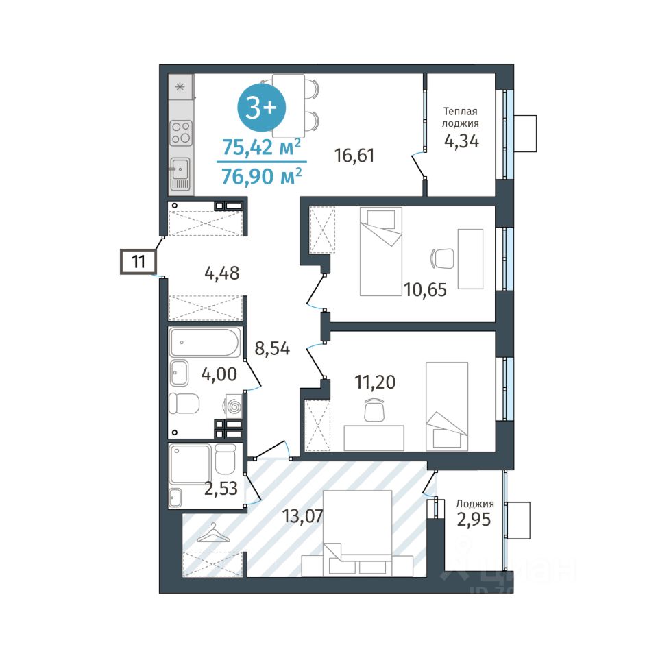 75 м² · Этаж 11 из 14