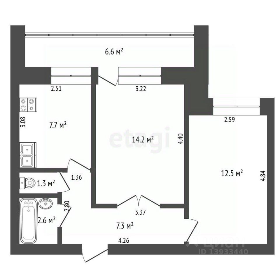 42 м² · Этаж 4 из 14