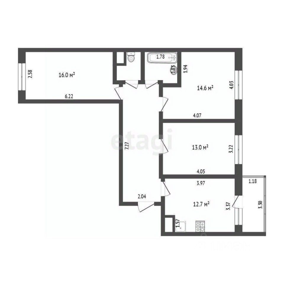 33 м² · Этаж 9 из 16