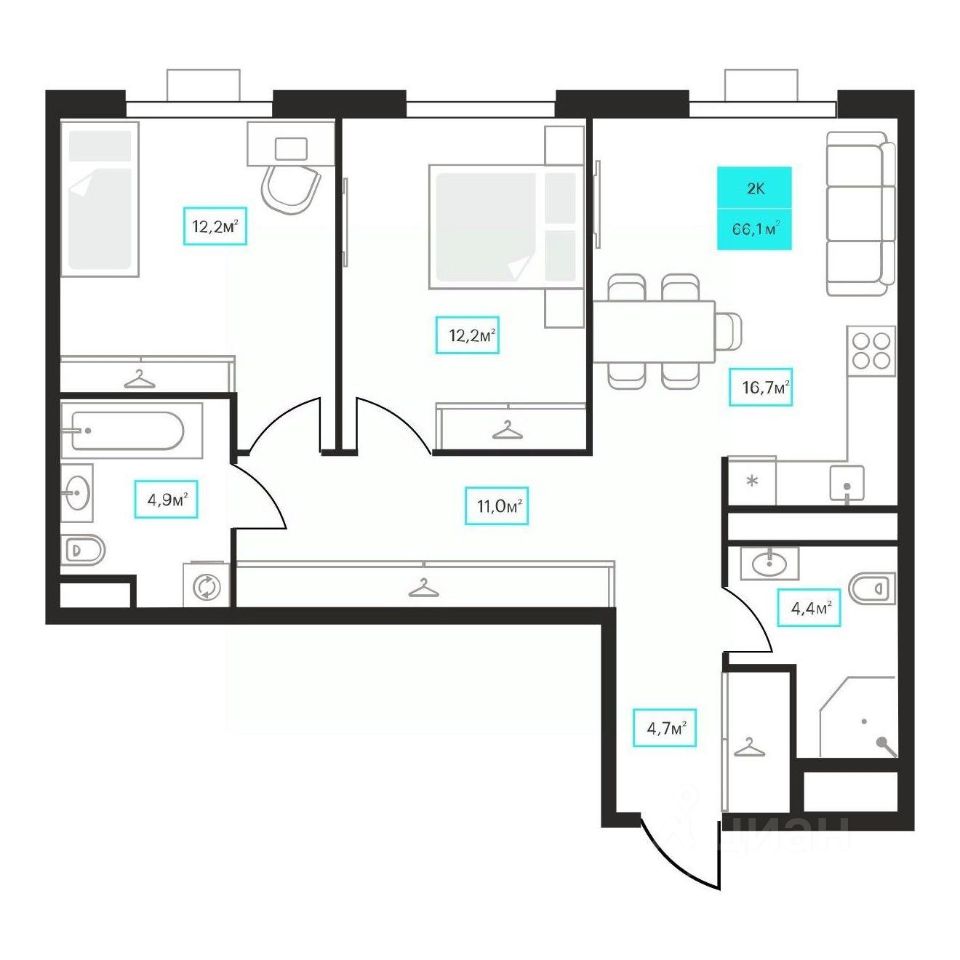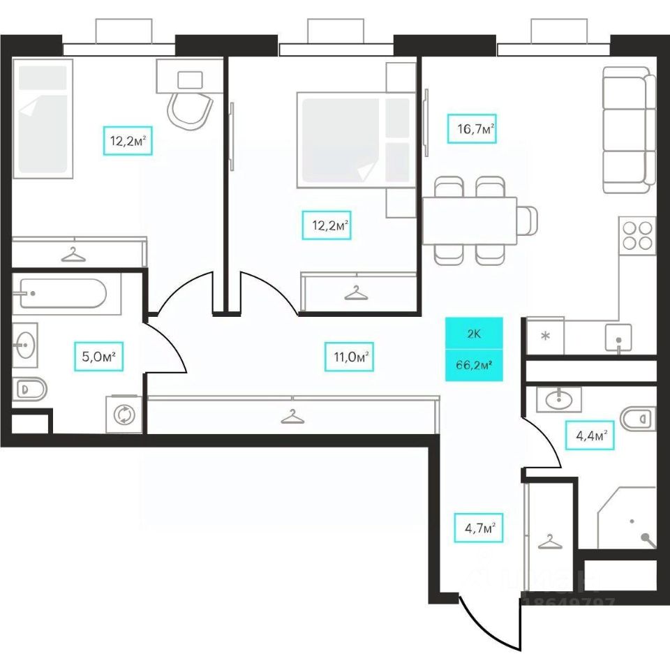 66 м² · Этаж 22 из 23