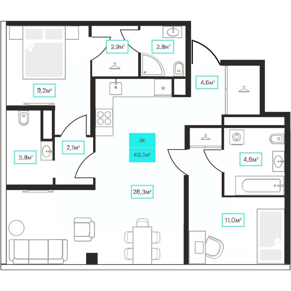 69 м² · Этаж 16 из 23