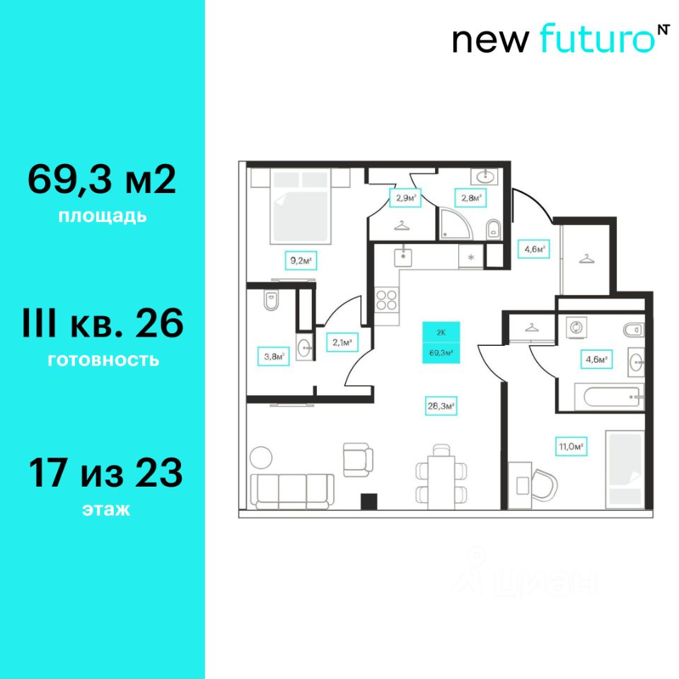 69 м² · Этаж 17 из 23