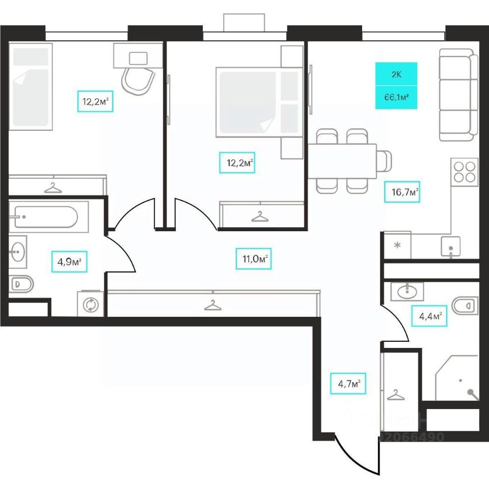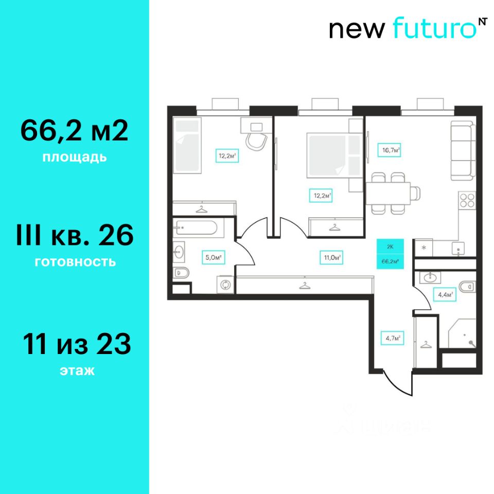 66 м² · Этаж 11 из 23