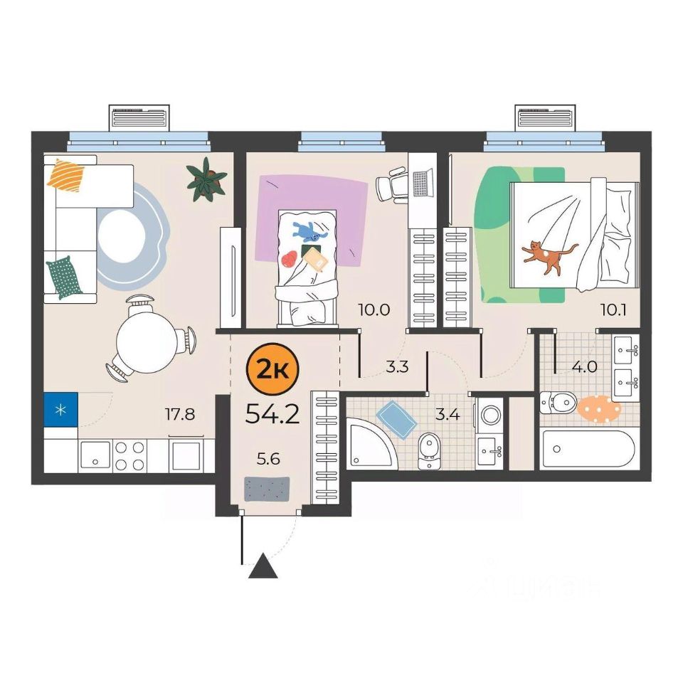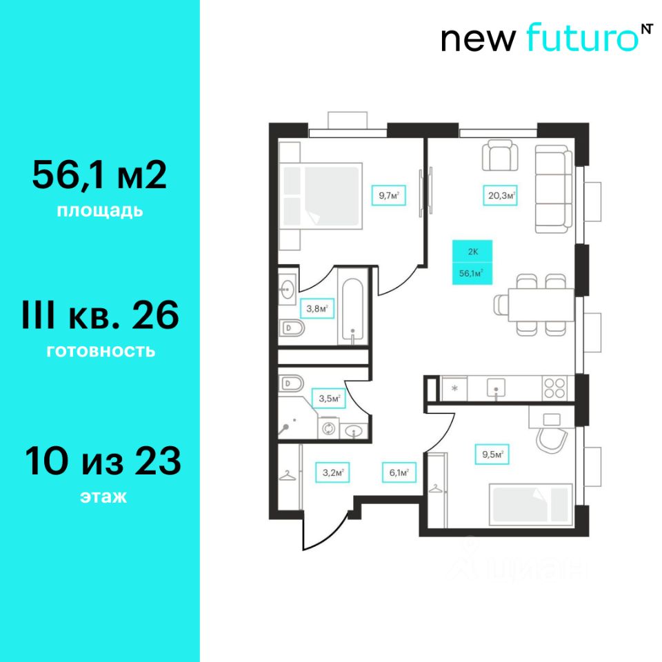 56 м² · Этаж 10 из 23