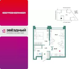 Продается 2комнатная квартира от застройщика ''Страна Девелопмент''. Квартира на 27 этаже, площадь квартиры 51,27 кв. м. Сдача — в 3 квартале 2025 года. Четыре 32-этажные башни со смещенными осями, объединенные общим стилобатом. На крыше дома появятся детские и спортивные площадки, зоны для релакса и отдыха. А в самом стилобате — торговая галерея и паркинг. У жителей будет свой сад с площадкой для йоги и воркаута, а еще с лаунж-зонами для чтения книг и пикников в тени деревьев. Пока вы занимаетесь спортом или отдыхаете, дети смогут вдоволь набегаться на детских площадках. ''Звездном'' есть планировочные решения под потребности каждой семьи. Среди их особенностей — просторные кухни-гостиные, мастер-спальни, гардеробные и кладовые. А для тех, кто ищет особенный вариант — двухуровневые квартиры с отдельным входом и квартиры с бильярдной или фитнес-залом. ОТДЕЛКА:Мы сдаем квартиры с предчистовой отделкой. Всё уже готово к ремонту: выведена разводка электричества и отопления, выполнена стяжка пола, стены выровнены. Вам останется выбрать материалы и приступить к ремонту. При покупке квартиры в ЖК ''Звездный'' можно включить стоимость ремонта в ипотеку. Застройщик предлагает три варианта цветовых решений: натуральный, светлый или тёмный. СПОСОБЫ ПОКУПКИ:Сотрудники Страны Девелопмент будут сопровождать вас на каждом этапе сделки, помогут получить одобрение по ипотеке или снизить ежемесячный платеж.-Ипотека -Материнский капитал -100% оплата наличными