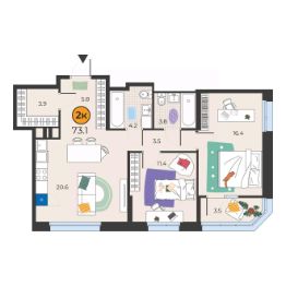2-к, Федюнинского, 3 Показать на карте